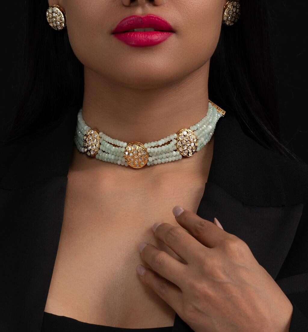 A Fusion of Nature, Brilliance, and Color: Natural Bead, Kundan & Meenakari Set