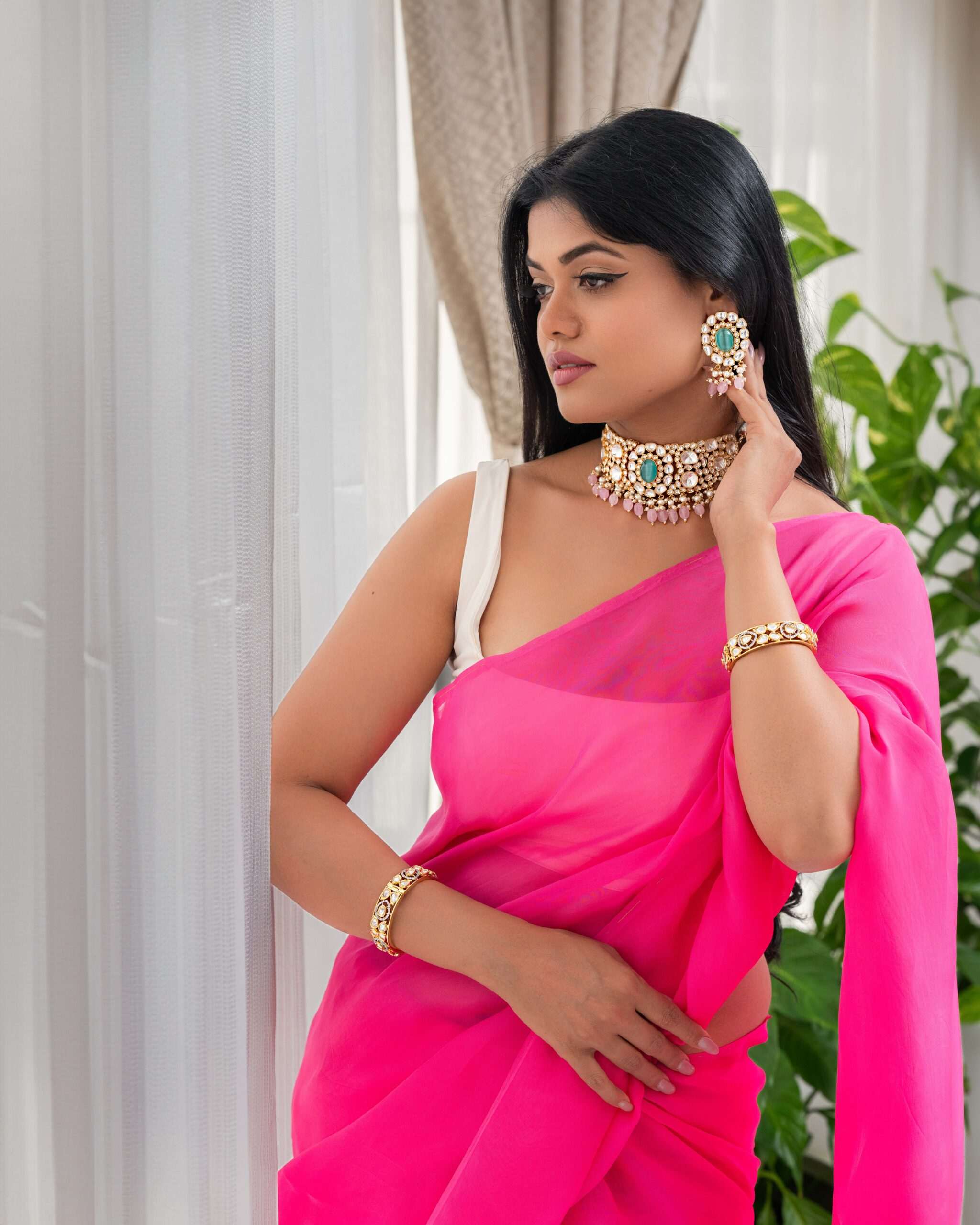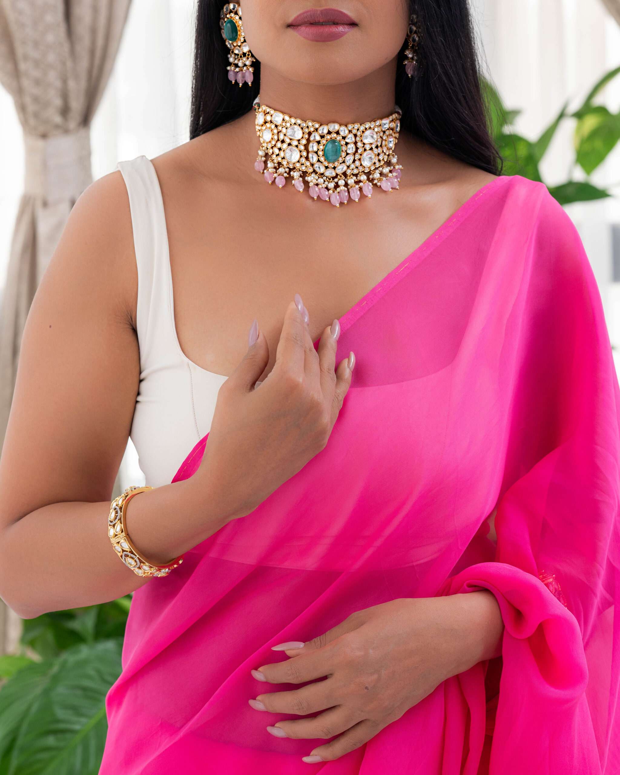 Indulge in a treasured heirloom. This polki kundan and natural bead set is a perfect embodiment of cultural heritage and timeless elegance. The captivating sparkle of the uncut diamonds and the natural beauty of the beads come together to create a versatile set that will be a cherished addition to your jewelry collection.