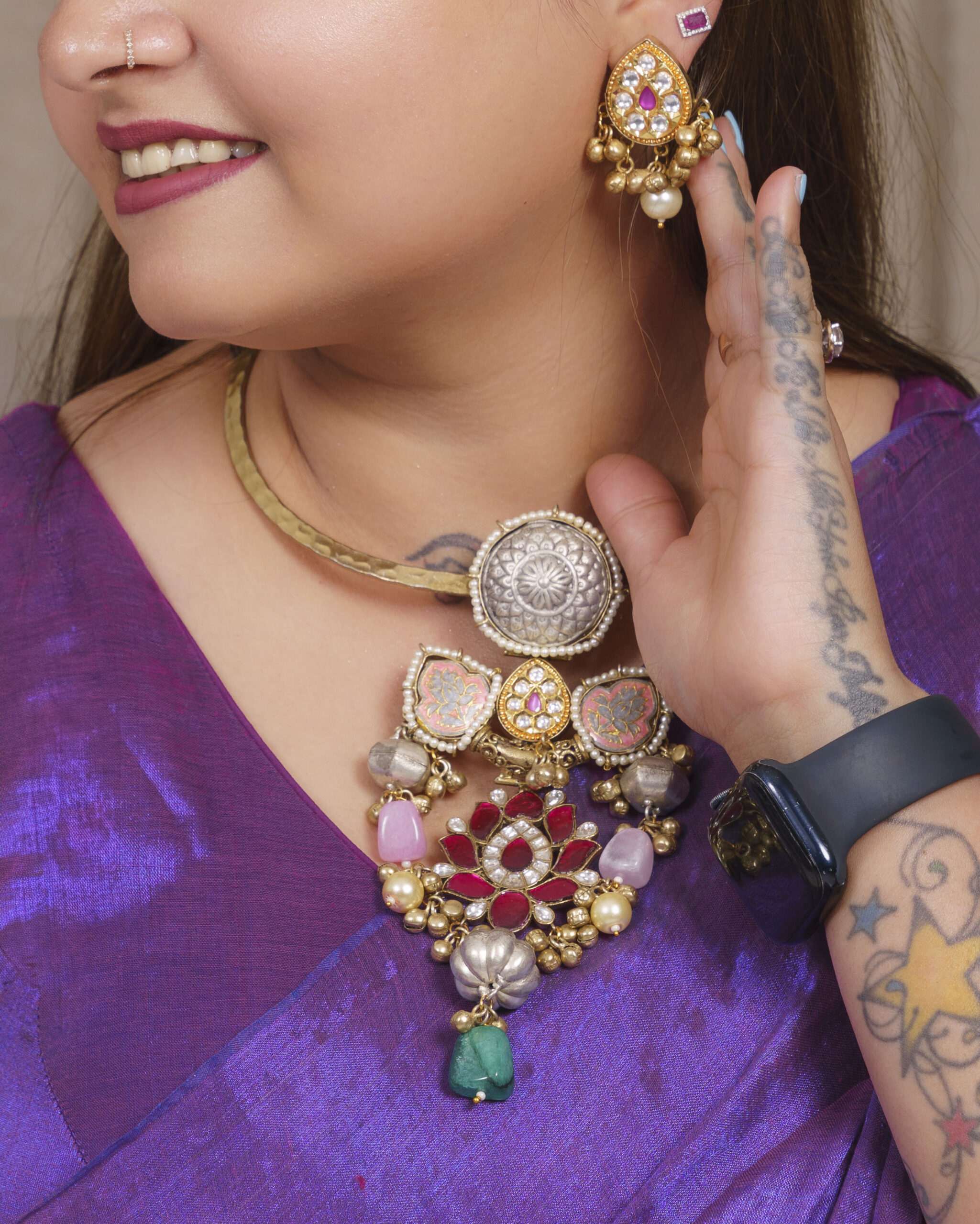 The Hasli Set is a timeless piece of jewelry that exudes effortless elegance. Inspired by traditional Indian craftsmanship, this set embodies a classic aesthetic with a touch of modern flair.