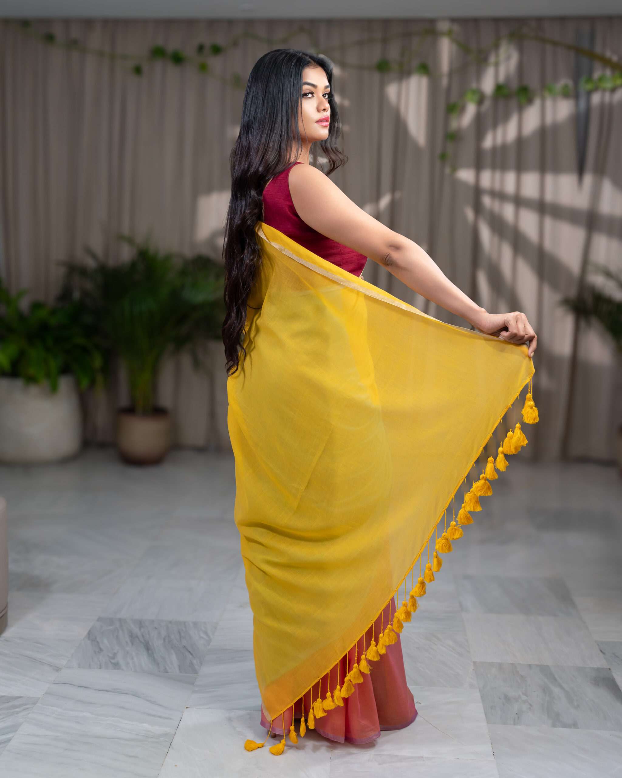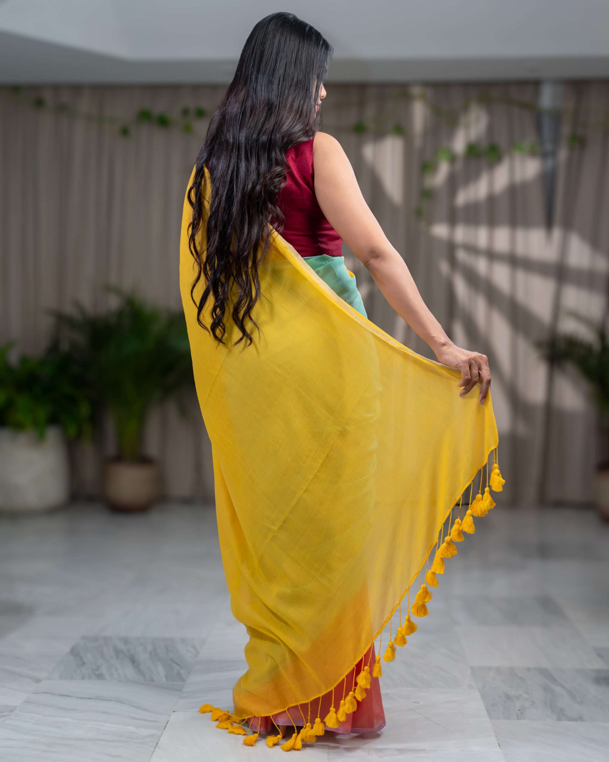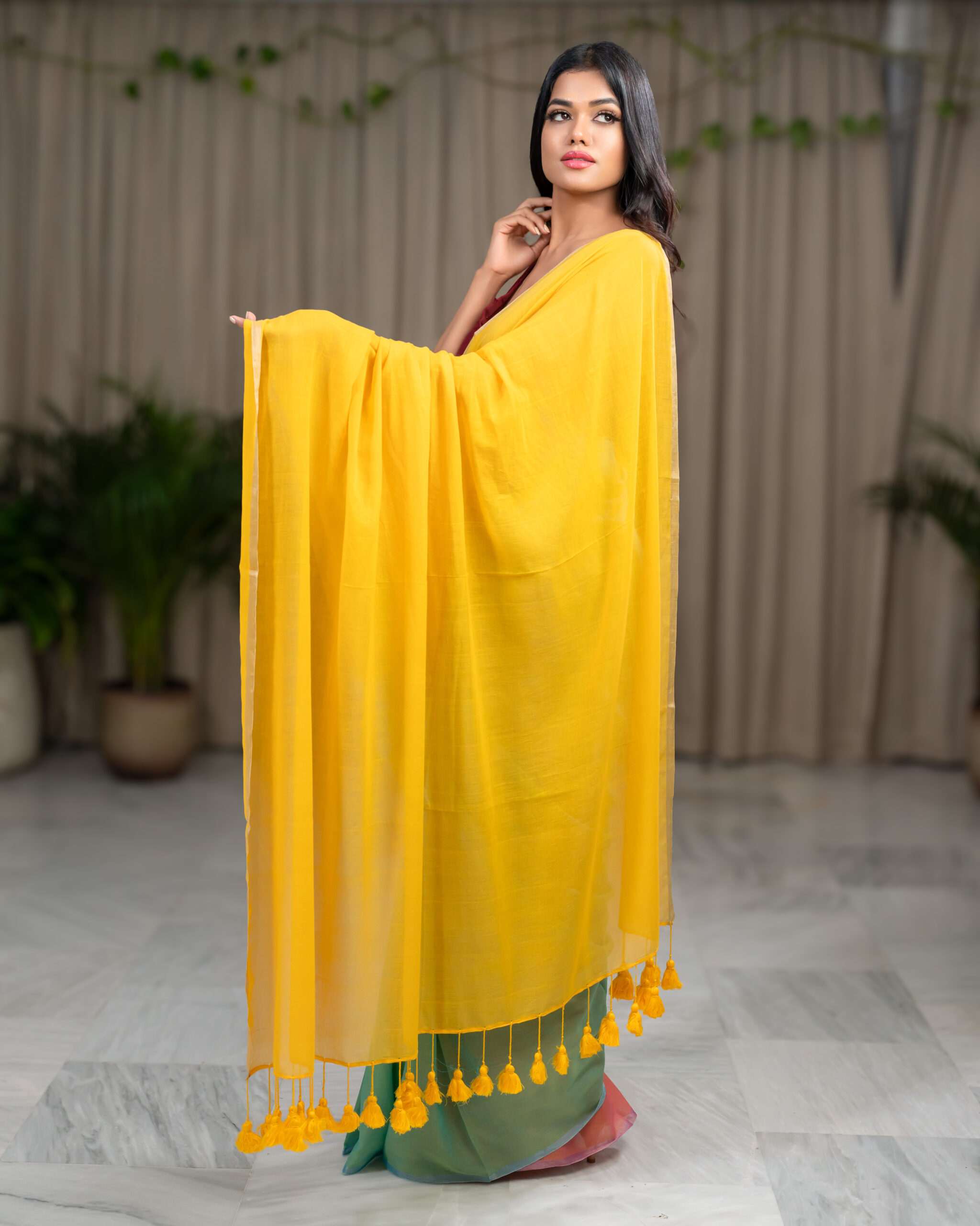 Experience the vibrant charm of our Multi-Color Cotton Saree. This stunning piece, crafted from soft and breathable cotton, features a captivating blend of green and yellow hues.